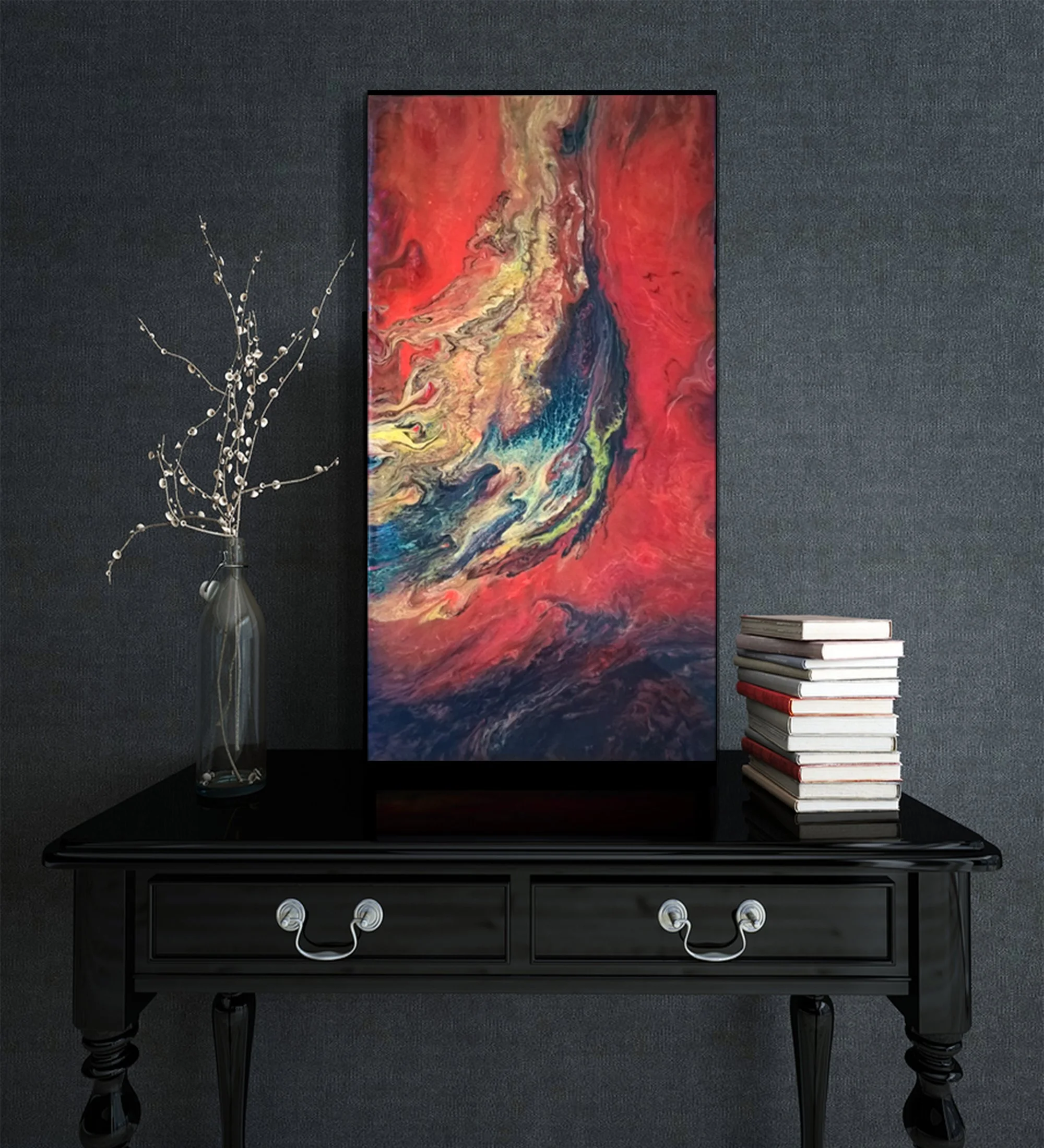 Resin artwork has a shiny, glass-like surface and does not require varnish to protect it from dust. You can gently clean it using a microfiber cloth.